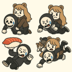 初期はこんな感じ。もうガールじゃない。熊。この記事作成当時は熊が頻繁に出没してて社会的に敏感だけど、こちとらその前から熊やってたんだからもうそんんなのおかまいなしで。(許して)LINEスタンプから始めたけど当初はSDでよく骸骨パーカー男を投げてた。そして多分これからも投げ続ける。基本強い。骸骨パーカー男が弱い。