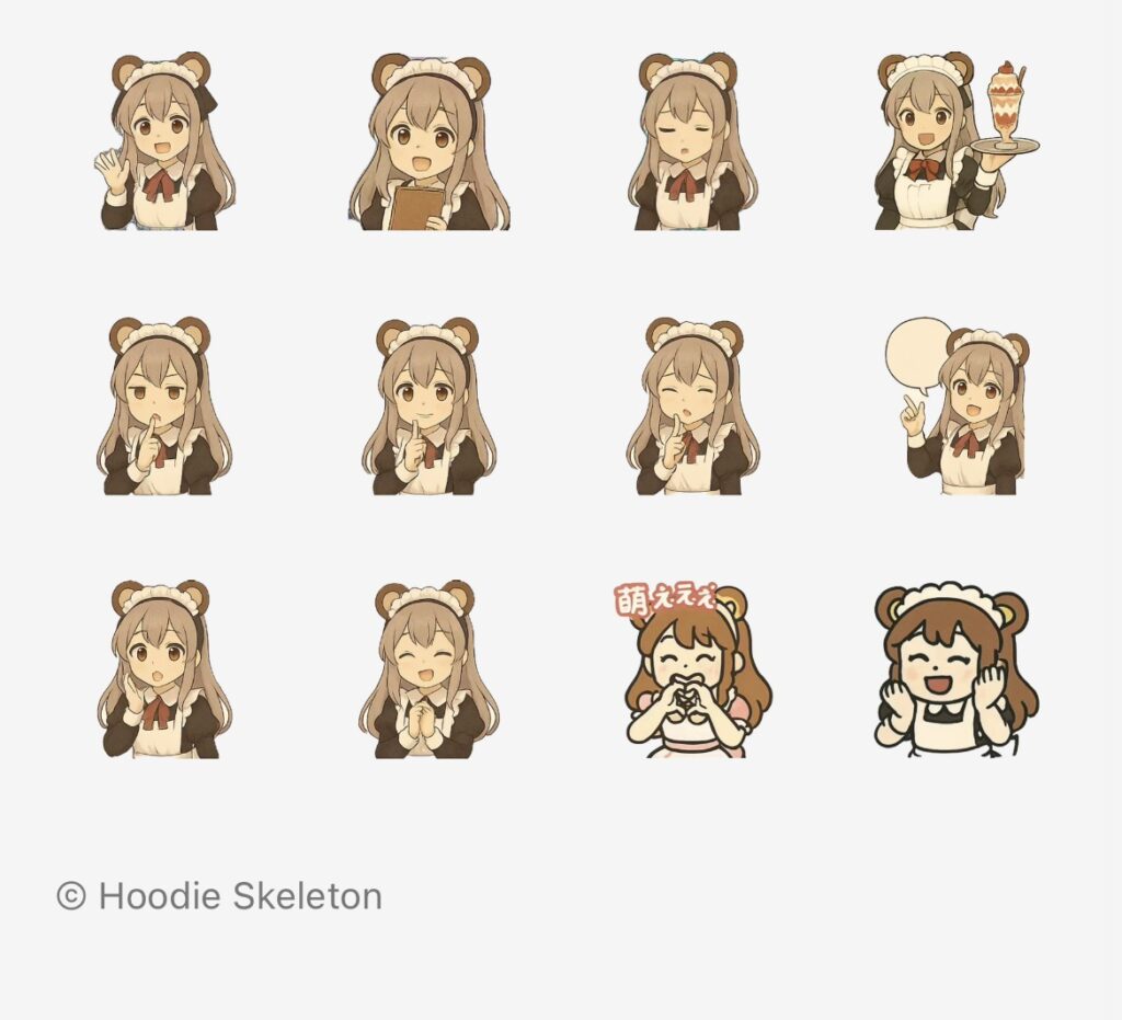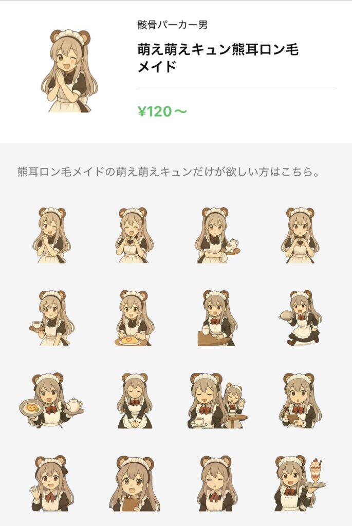 もうこんなにこのスタンプ褒めるとは思わなんだわ…このスタンプ派生形もありますよ。↑のスタンプは熊耳ロン毛ガールのメイドも骸骨パーカー男のメイドもあって満遍なく楽しめる?仕様になっております。