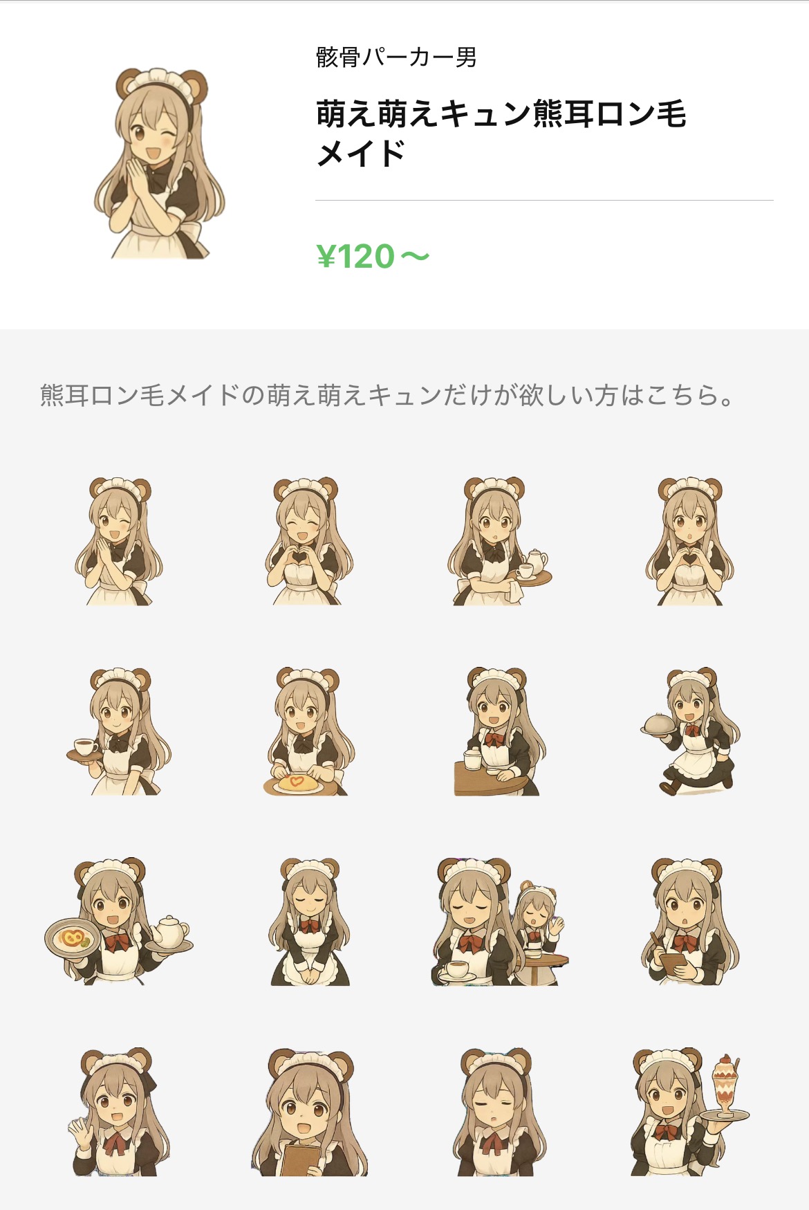 もうこんなにこのスタンプ褒めるとは思わなんだわ…このスタンプ派生形もありますよ。↑のスタンプは熊耳ロン毛ガールのメイドも骸骨パーカー男のメイドもあって満遍なく楽しめる?仕様になっております。