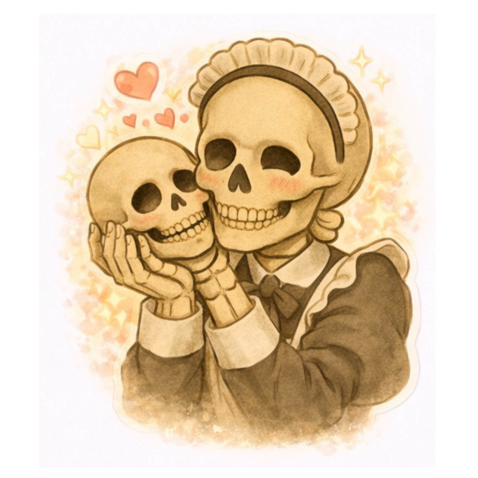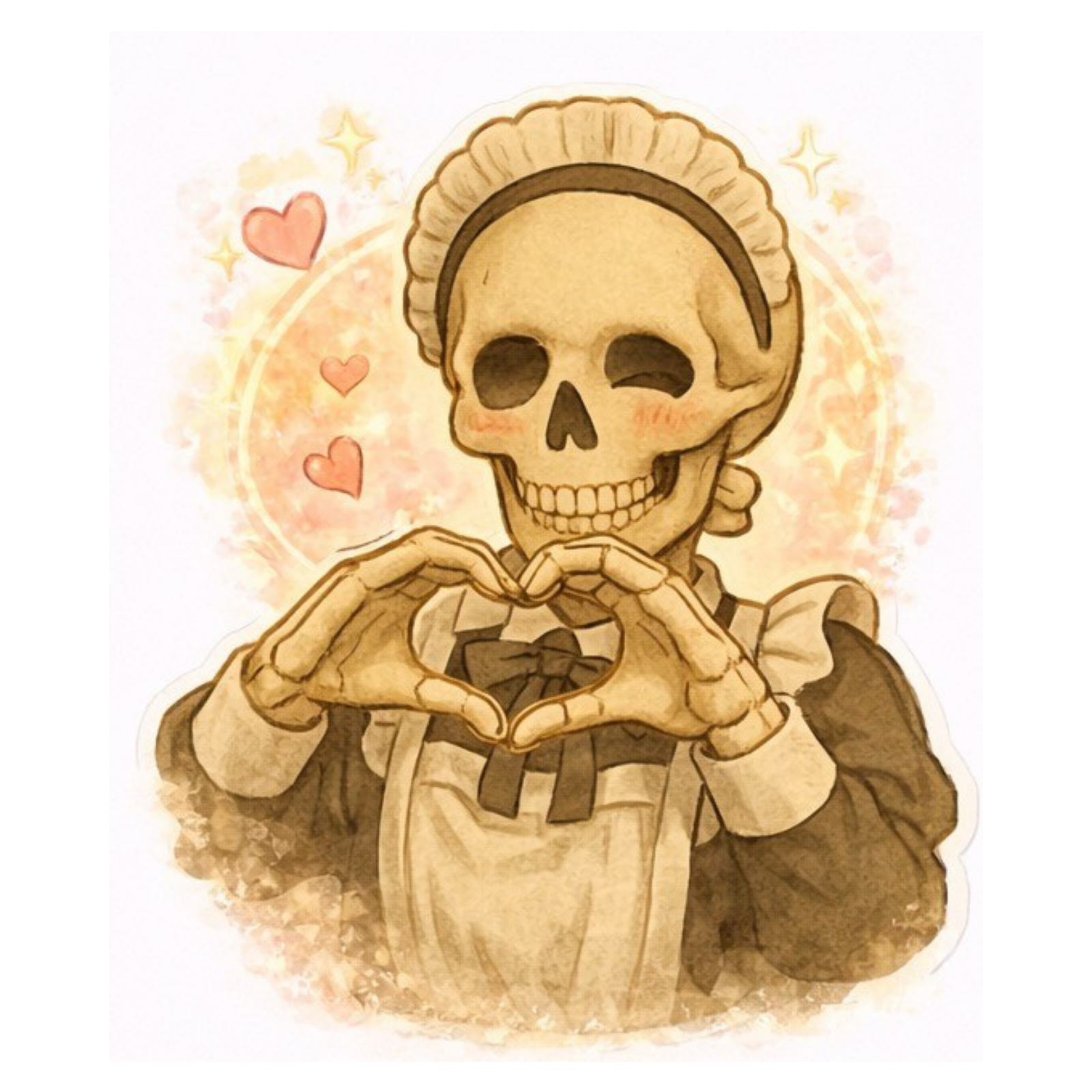 ちょっと可愛い骸骨メイドのデジタルステッカー