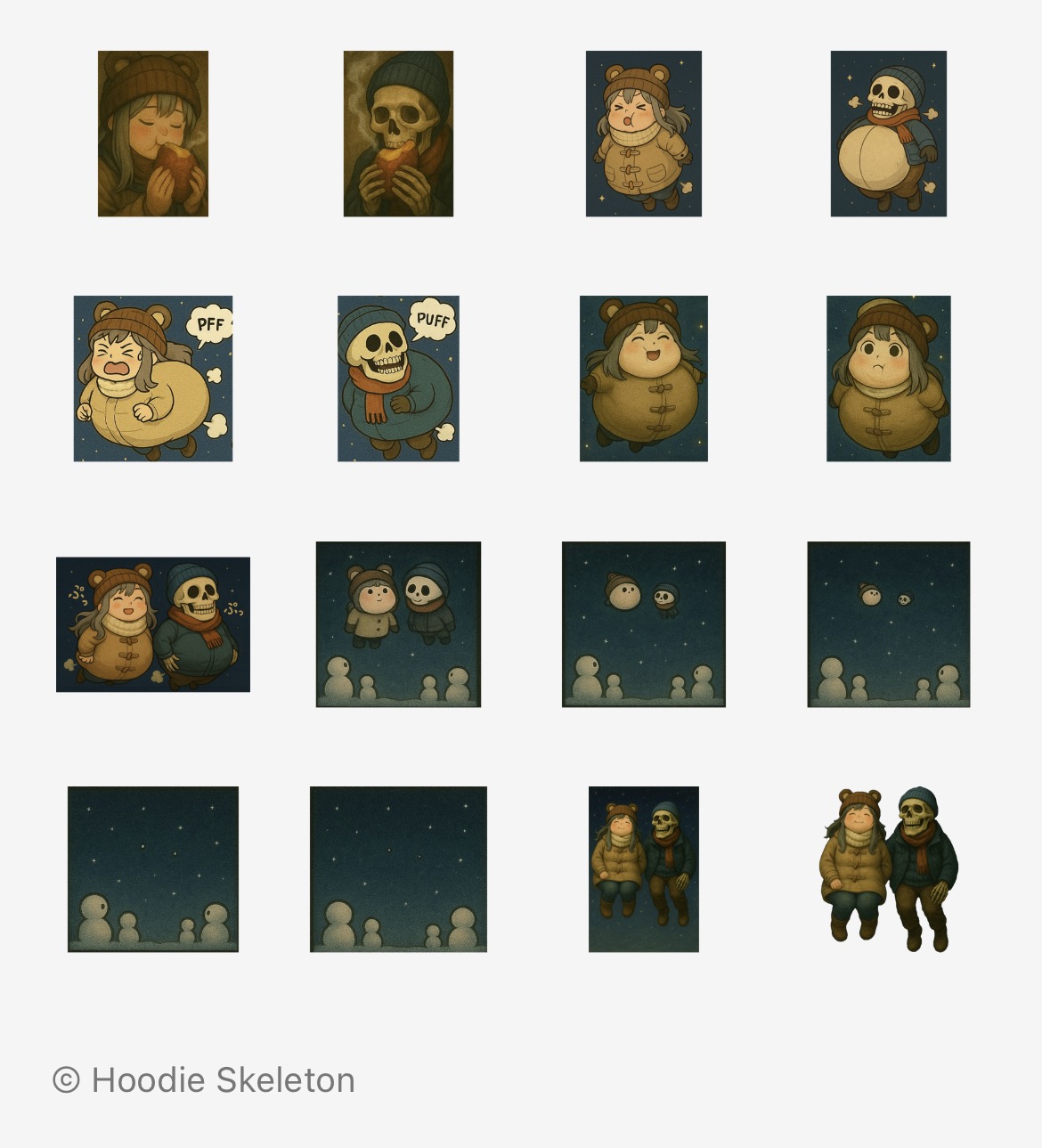 LINEスタンプというかストーリーですね。また別のコンテンツでも展開していきます。むっちゃ焼き芋食べたい時や、おならが出すぎて空飛びそうなときがこのスタンプの使いどころですね♪仲良く芋を食べるシーンと、空から芋が降り注いでくる幻想的()なシーンからの丸くなっておならで空を舞い上がって行くシーンのキャラのギャップが楽しめるボリューム感ある仕上がりになっております。