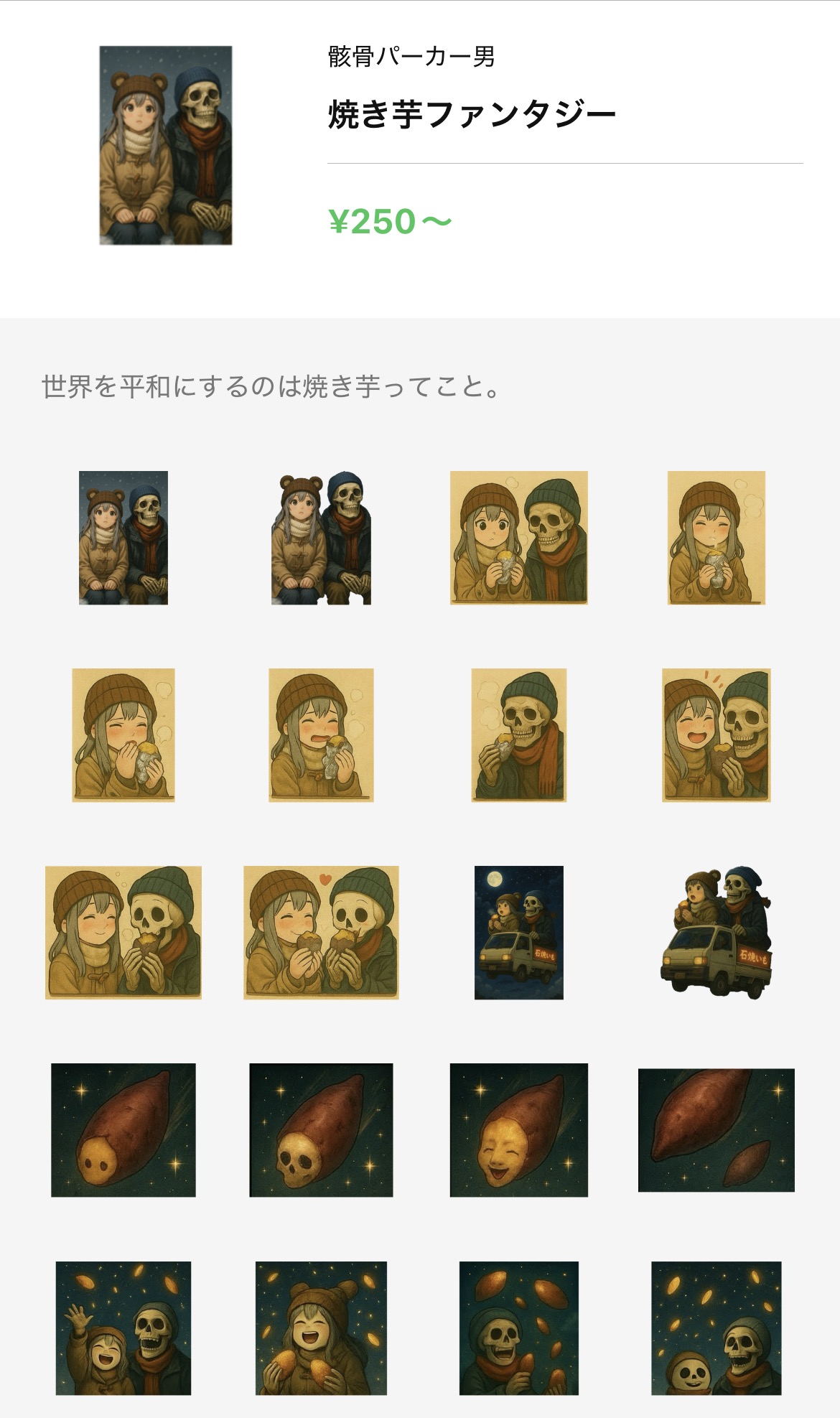焼き芋ファンタジーのLINEスタンプ販売しています。